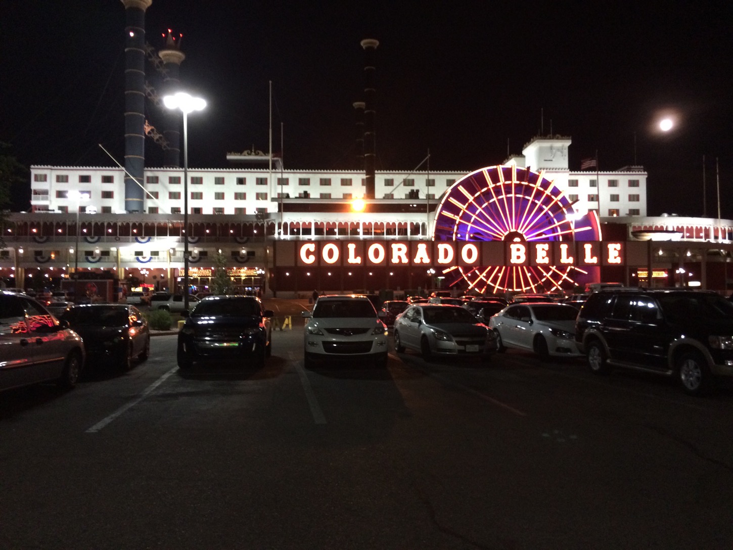 Snabbt sprang vi över bygget, så jädrans hett och sen iväg till Laughlin och Colorado Bell Hotell o Casino. Vi stannade till i Boulder City o shoppade lite. När vi kom fram bytte vi till rum för icke rökare…, kollade Coloradofloden o åt en go middag med ett par pitchers.