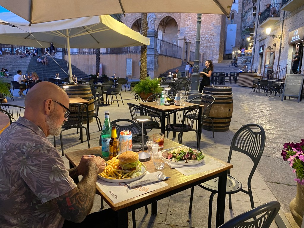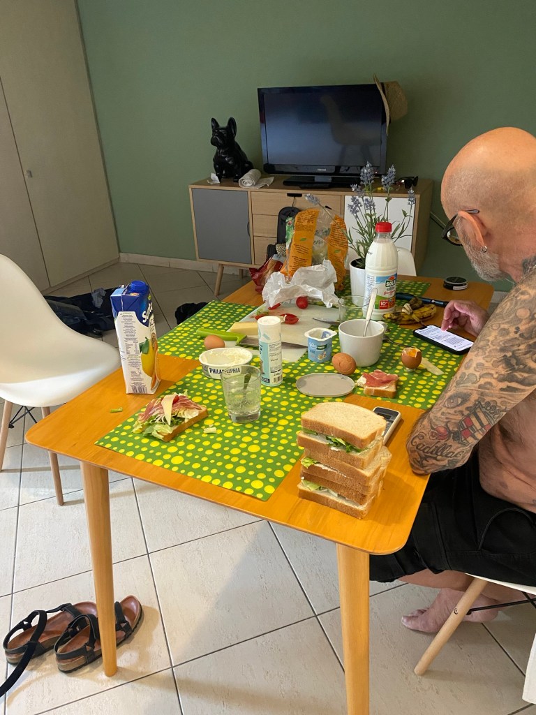 Gött som sagt att åka tåg. Vi kom till vår nya balkong med utsikt i Cefalu och gav oss ut. Så härligt, smala gränder och gamla hus med fina balkonger. Men det kollar vi mer i morgon. Vi åt, drack Negroni och avslutade kvällen på balkongen med att titta på folk o inmundiga en Messinaöl. Peter tog bort sitt halsskägg😂Naglar o hår växer som sören i värmen. I mon badar vi😊