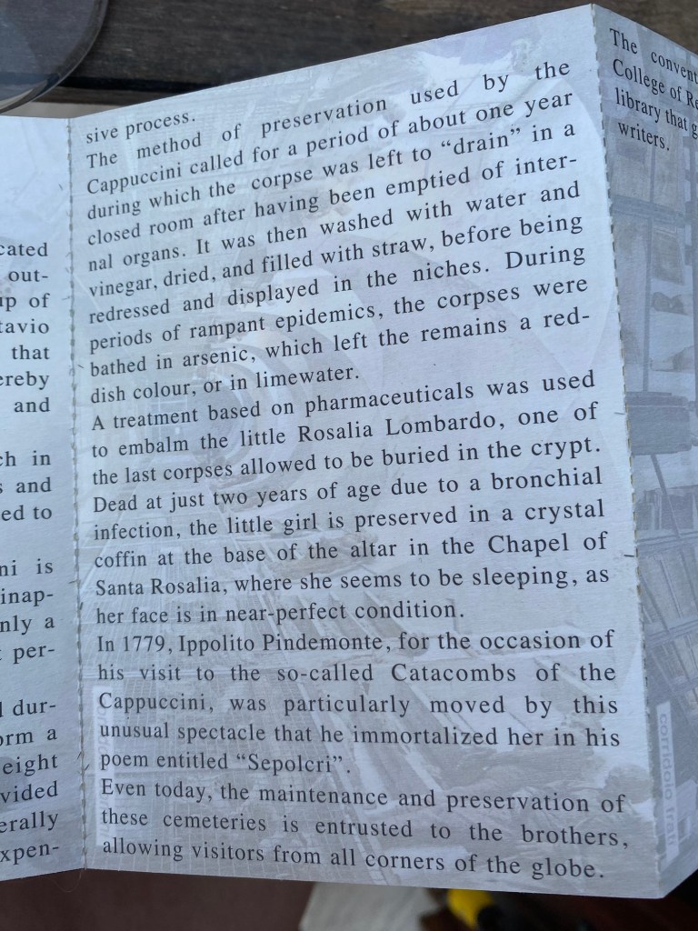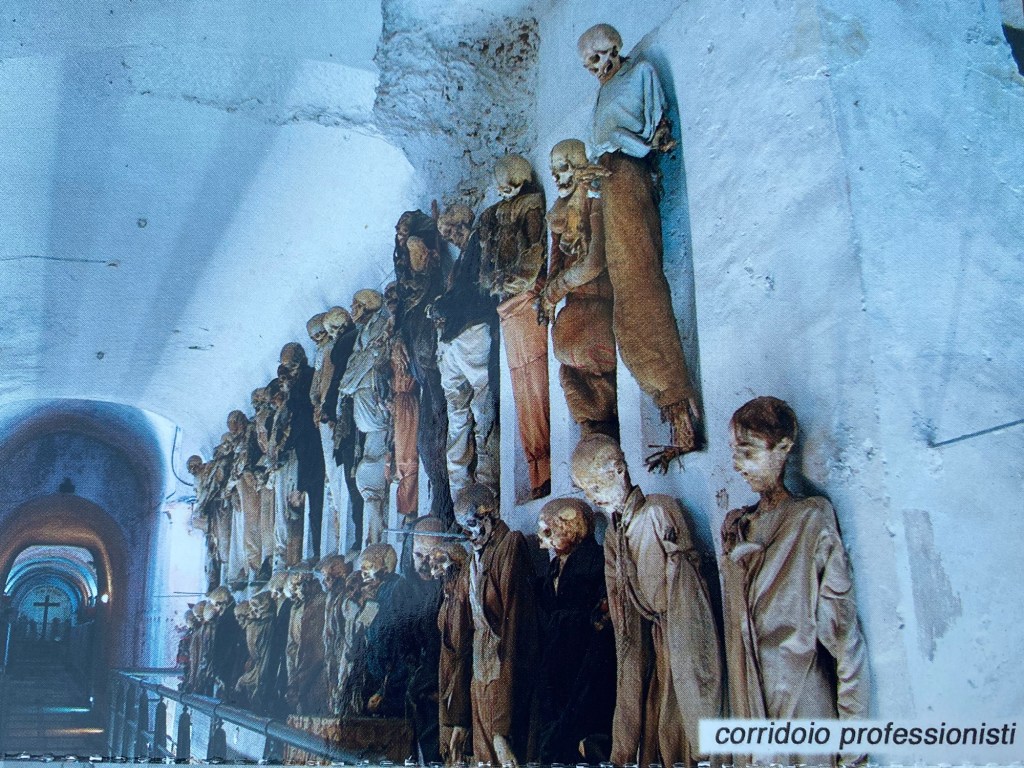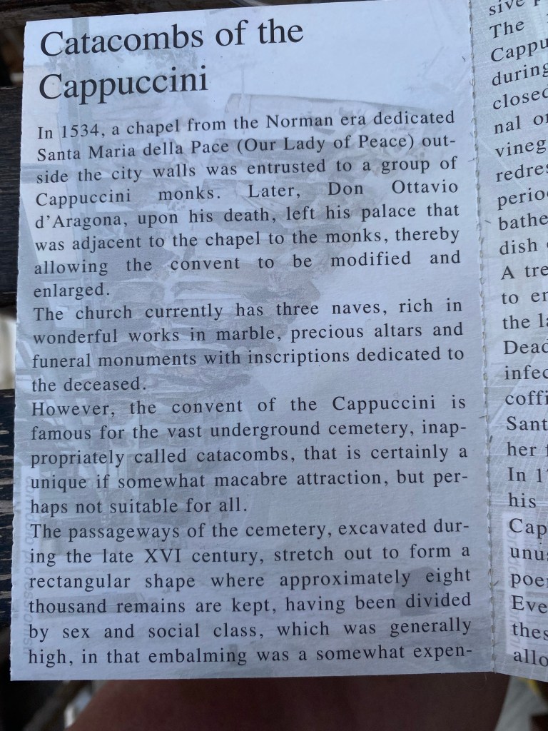 Vi kom sedan till katakomberna. Märklig upplevelse! Läs gärna infon jag skickat med. Det berörde, en konstig känsla av vemod och förvirring. Till och med amerikanarna var tysta. Pengarna till inträdet går till hemlösa i Palermo❤️