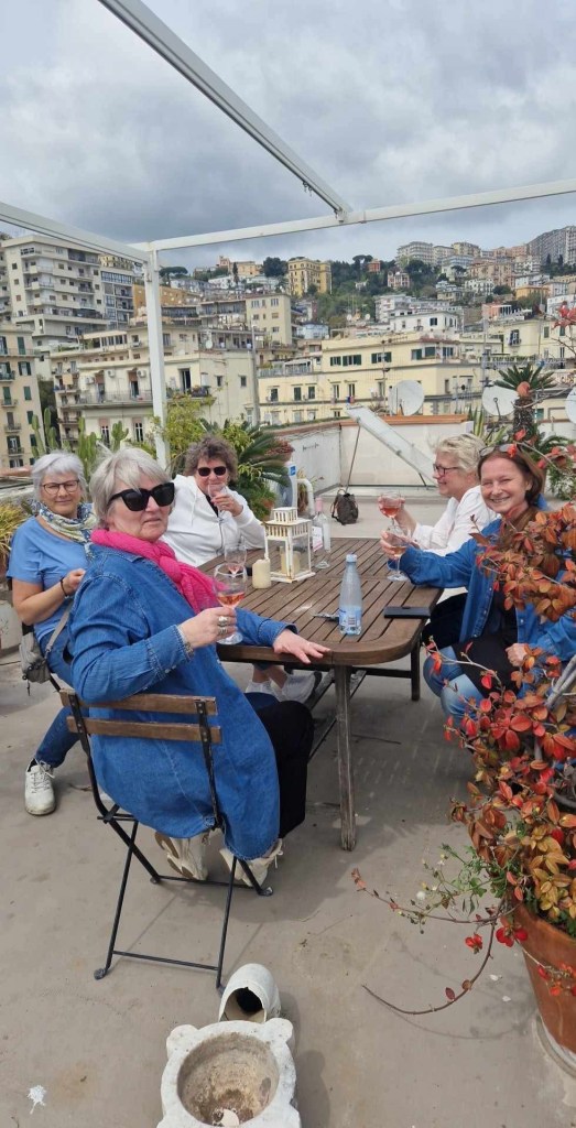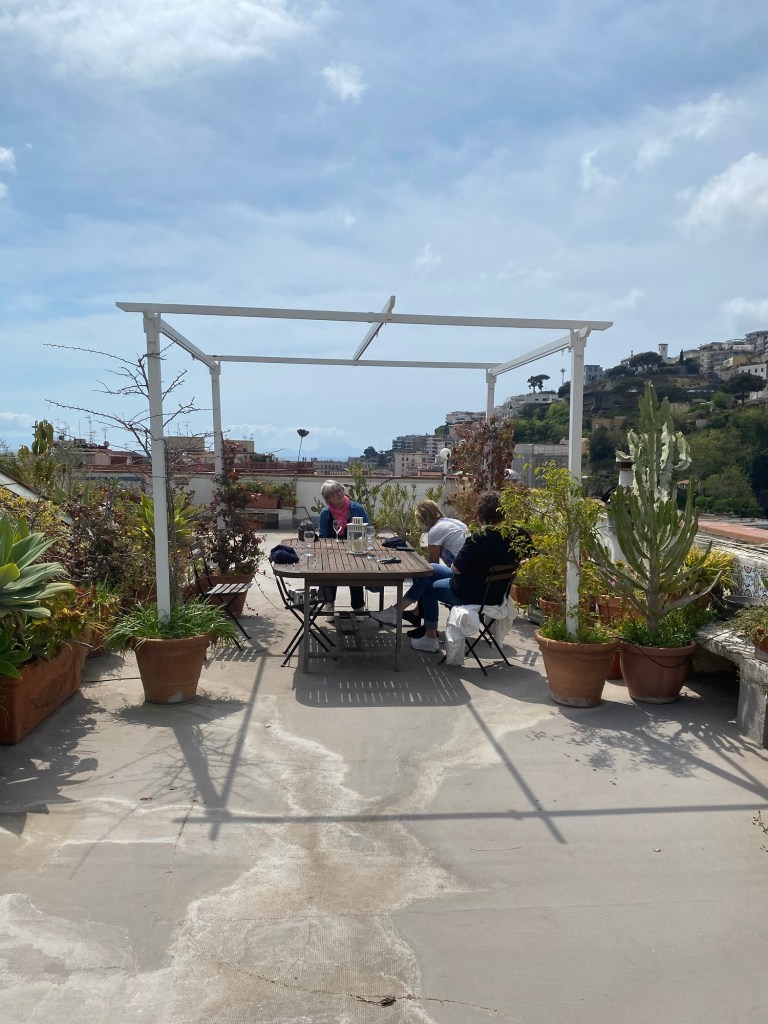 Vi träffades på Kastrup och övernattade där för att ta ett tidigt flyg🥱 Ett par timmar senare landade vi. Pepe hämtade och oss körde oss till Paolos lägenhet där vi träffade hans bror Luigi😂Ja ni hör… Nåväl, vi installerade oss efter några timmar som vi fick tillbringa på vår terrass då ett par napoletanska damer städade. Vilken utsikt, vilket väder! Ja i alla fall minst 20 grader i skuggan..