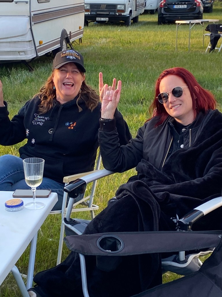 Äntligen! Trodde inte jag skulle fixa SRF nr 23. Opererade min njure i onsdags, följde alla råd och urologen tyckte att jag visst skulle åka. En sån befrielse! Drog iväg från Laholm i min gamla husbil tillsammans med Maria, Peter, Jacob och Josefin. Kanonväder! Körde över Älmhult, hämtade upp Alm o co och landade på Rosenlunds camping vid 15-tiden. Så mycket folk redan! Gick en runda, så gutt, samlades sedan vid våra boenden, fixade käk och snackade om morgondagen, snackade om banden och om livet. Det är så det är här. Underbart!