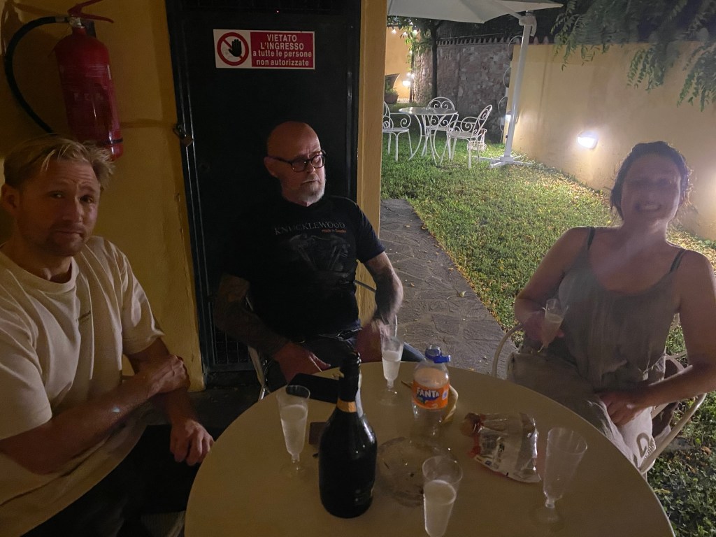 Denna gång åker vi till Toscana med Oscar (vår äldste son), Anna och barnbarnen Agnes och Ines. Gissa vilka som är uppspelta 😊Vi tog tåget till Kastrup, käkade där och flög sedan till Pisa. Pisa har en liten flygplats så det gick snabbt ut ur den. Fick gå till biluthyraren där det strulade😝Orkar inte gå in på vad orsaken var men vi skulle haft en bil, fick två och tillbringade alldeles för lång tid där. Vi kom till hotellet typ 23.00, tog en liten Prosecco och stupade i säng.