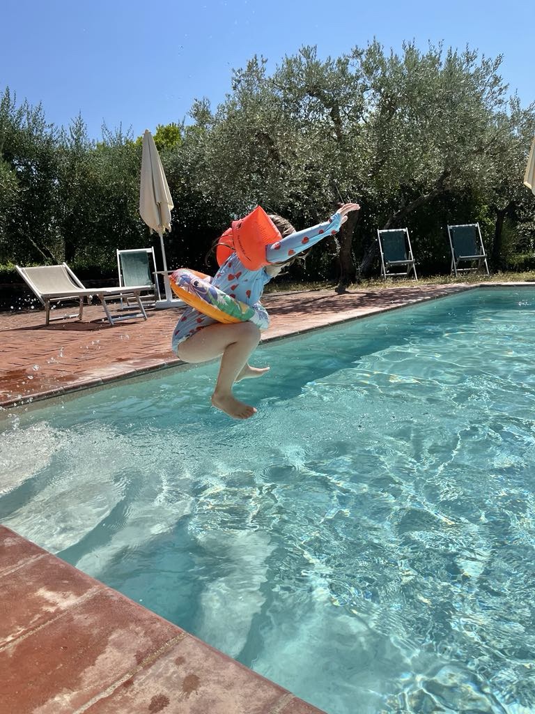 Idag skickade vi iväg föräldrarna! Vi gick direkt ner till poolen och tillbringade några timmar där. Varmt och skönt! Ines och Agnes tränade på att hoppa i poolen och att övervinna sina rädslor för att hamna under vattenytan. Vi fixade käk hemma och sedan ner till poolen igen😅😊