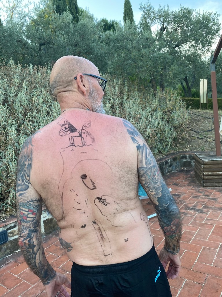 På em kommer Oscar o Anna tillbaka efter att varit på en vingård som varit på Oscars bucketlist. Det blev en kväll vid poolen, lampor tända, Ines o Agnes ritade nya kommande tatueringar på Peters rygg och ja, en så härlig vistelse i den toscanska naturen. Peter förklarade känslan ” Det är som att vara inne, fast ute”.