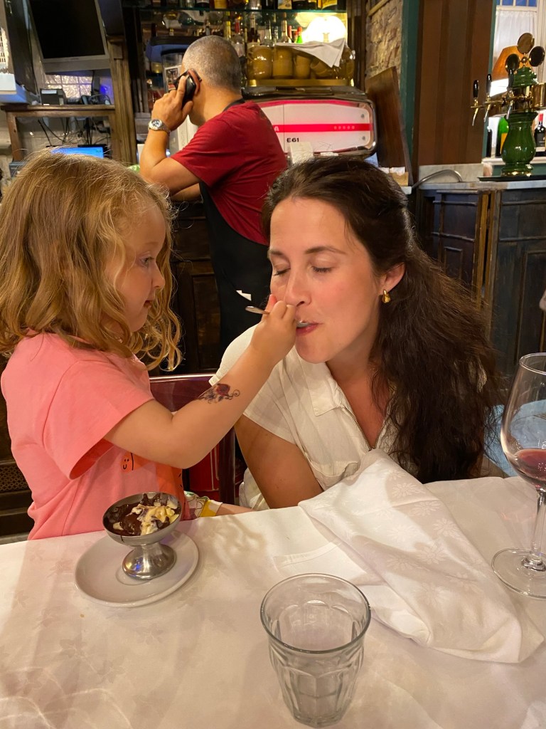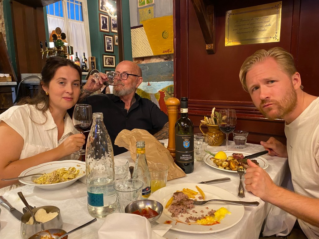 Precis nedanför vår lägenhet ligger en restaurang, Oscar fixade bord och vi åt och drack gott vin!