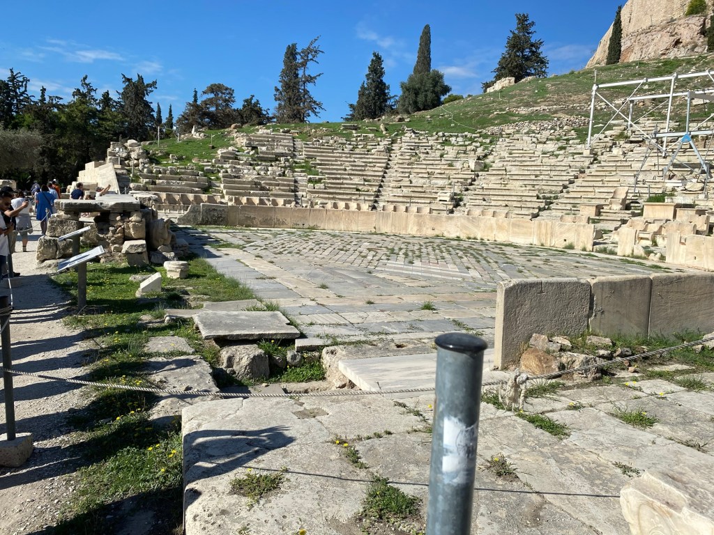 11.00 knallade vi in genom inträdet till Klippan. Ja, det är en bit att gå och då i uppförslut men på vägen såg vi bl.a. Dionysousteatern. Inte jättemycket folk och en speciell känsla infann sig, nu är vi snart där!