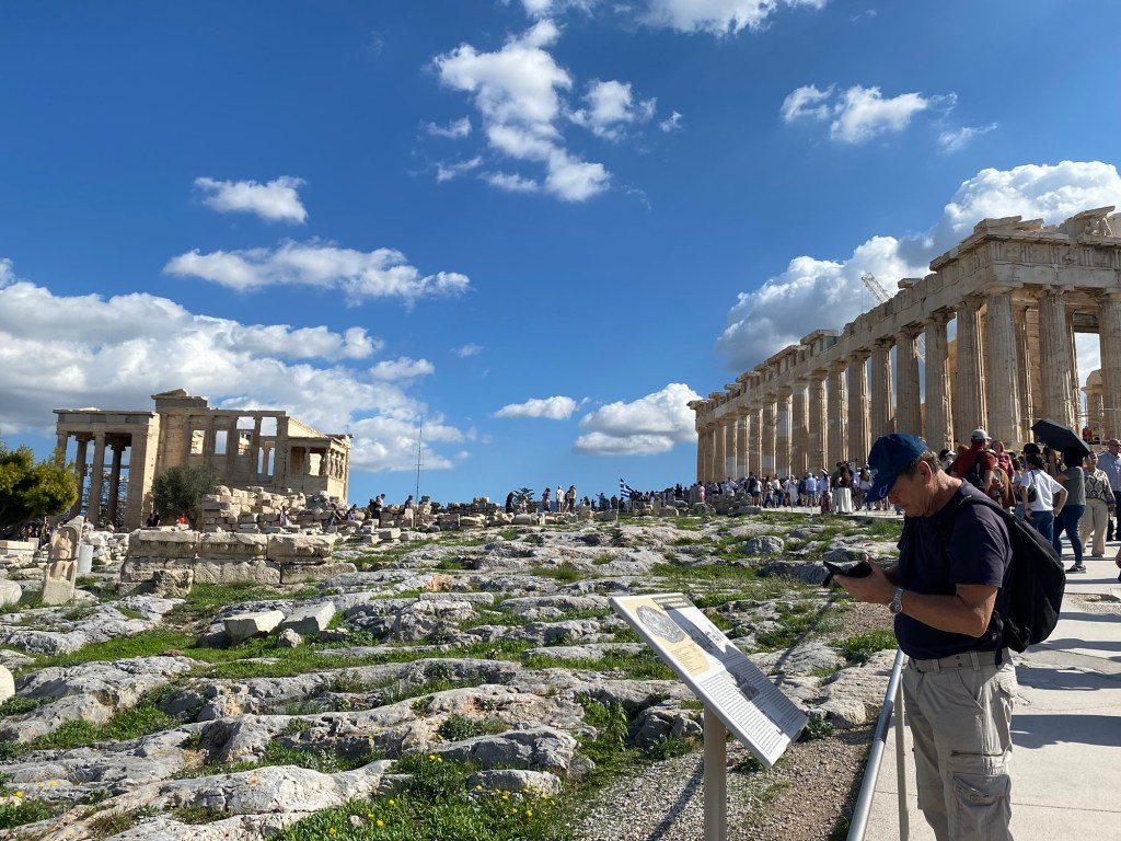 När man bokar onlinebiljett till Akropolis måste man boka tid också. Så en 10.00-öl hanns med🌞😛
